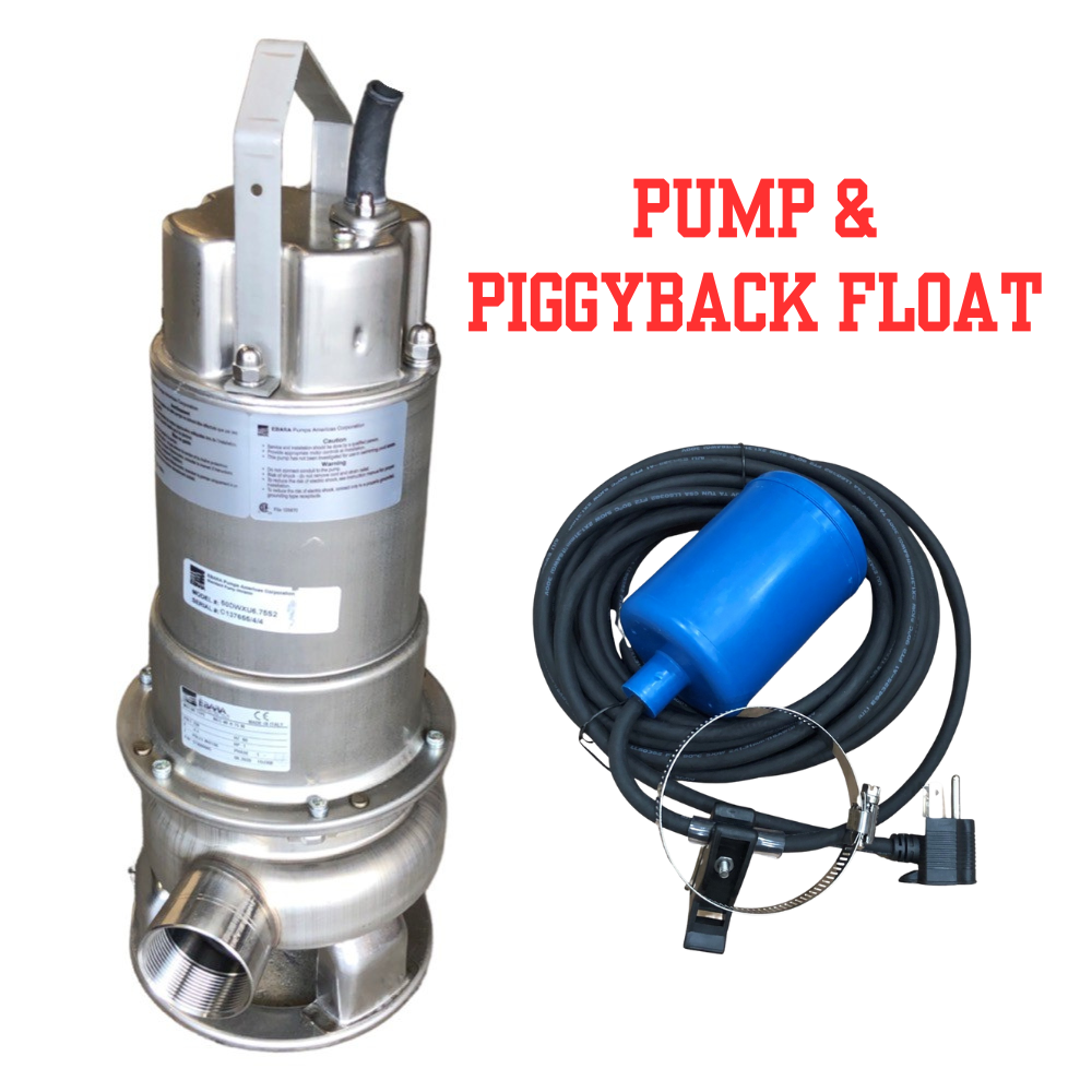 Features Ebara 50DWXU pump. The pump is constructed of high-quality, corrosion-resistant 304 stainless steel and uses a vortex impeller.